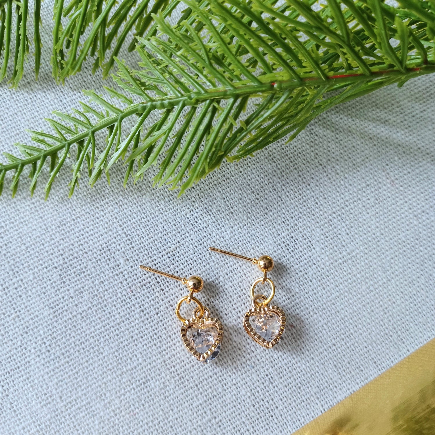 Earrings: Includes a pair of gold-colored earrings with stainless steel plated iron ear stud and a heart-shaped cubic zirconia alloy charm of 10 x 8.5 x 5 mm, thickness of 5mm.