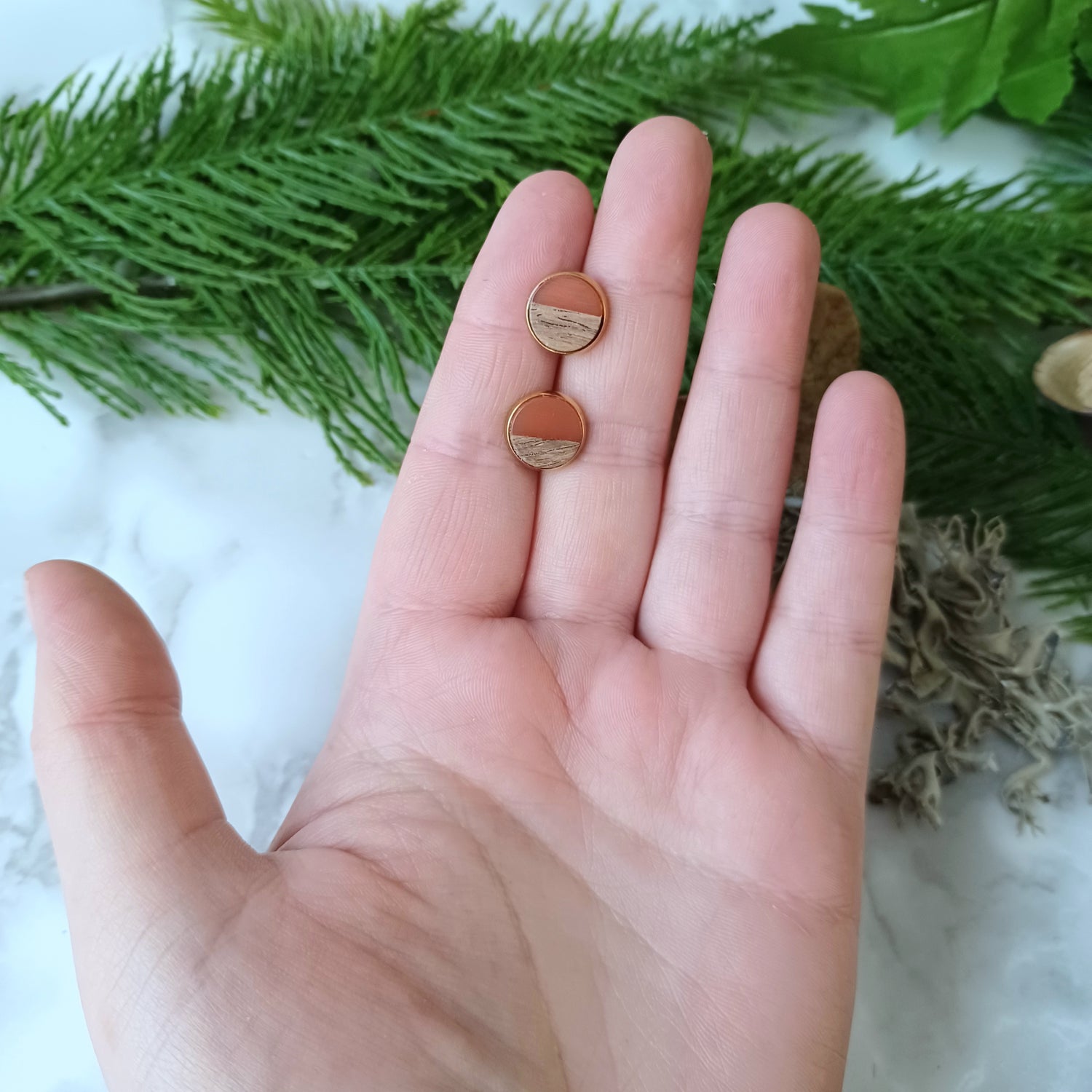 Boucles d'oreilles rondes résine terracotta et bois/Round resin terracotta and wood earrings