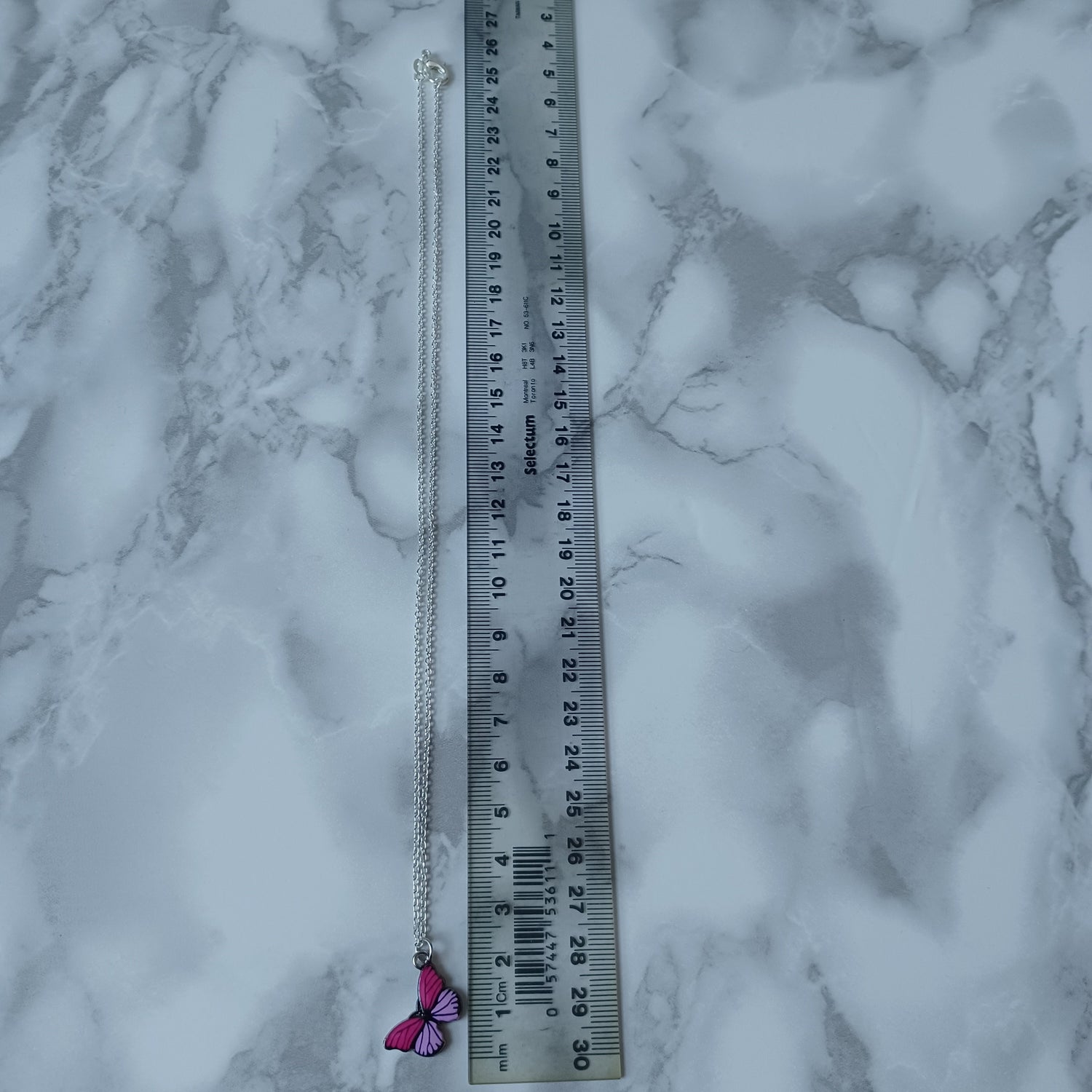 Necklace: Includes a necklace with a metal alloy butterfly charm. Chain 45.7 cm long (excluding the charm) and 1.2 mm wide.