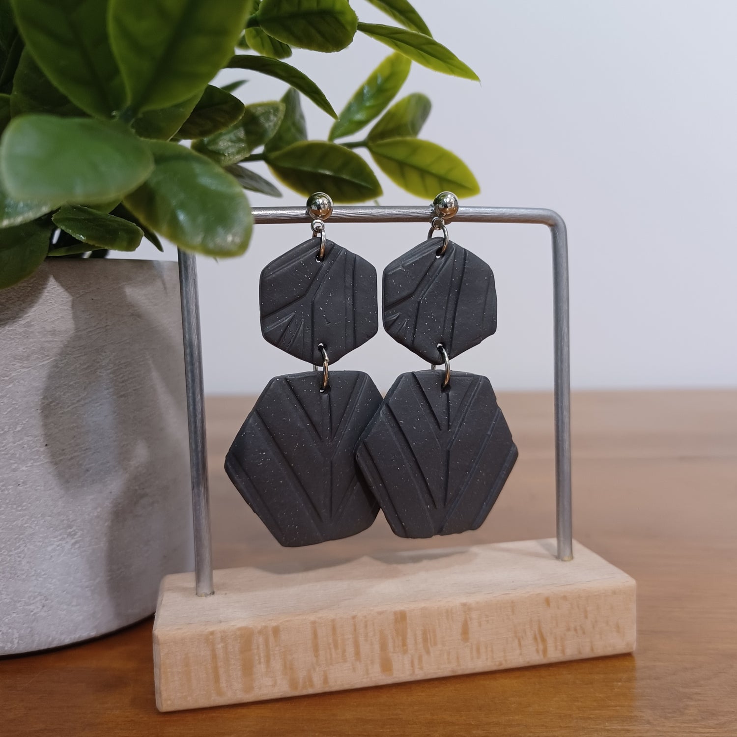 Boucles d’oreilles en argile polymère gris charbon avec paillettes argentées