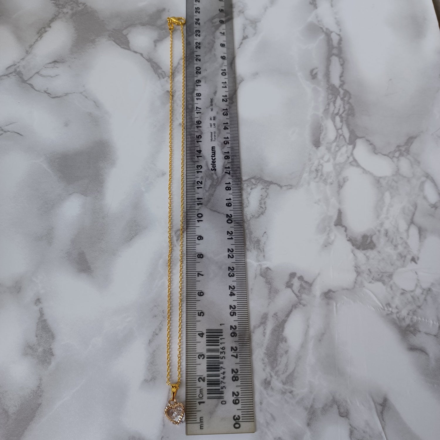 Necklace: Includes a gold color necklace with a heart shaped cubic zirconia alloy charm 10 x 8.5 x 5mm, thickness 5mm. Chain of 45.7 cm long (excluding charm) and 1.2 mm wide.