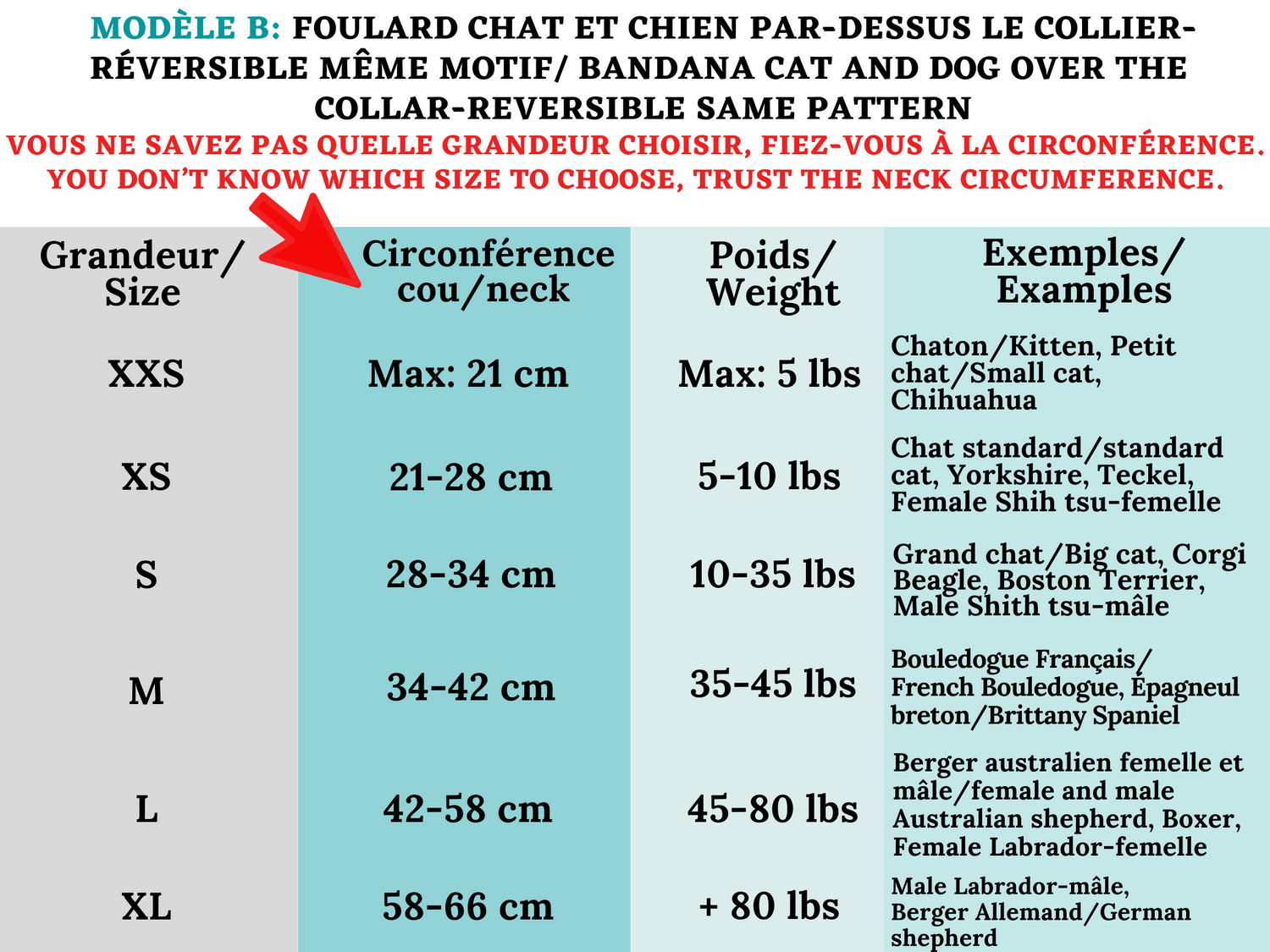 XXS à XL-Foulard pour chat et chien fait main/Bandana for cat and dog handmade.