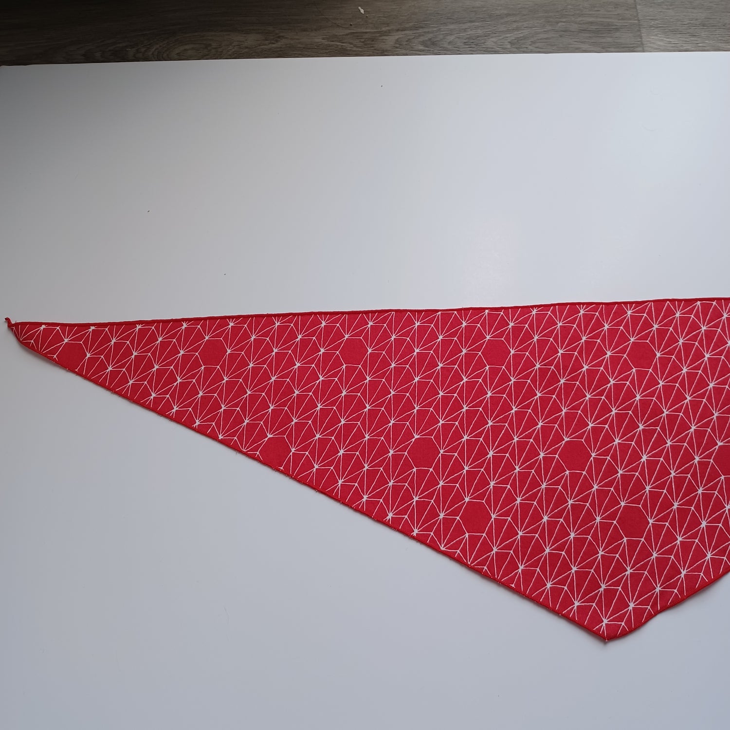 Modèle A-Chat et chien-Foulard Rouge et blanc avec formes géométriques/Bandana Red and white with geometric shapes