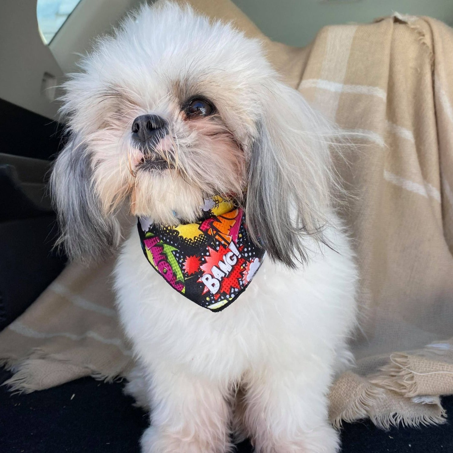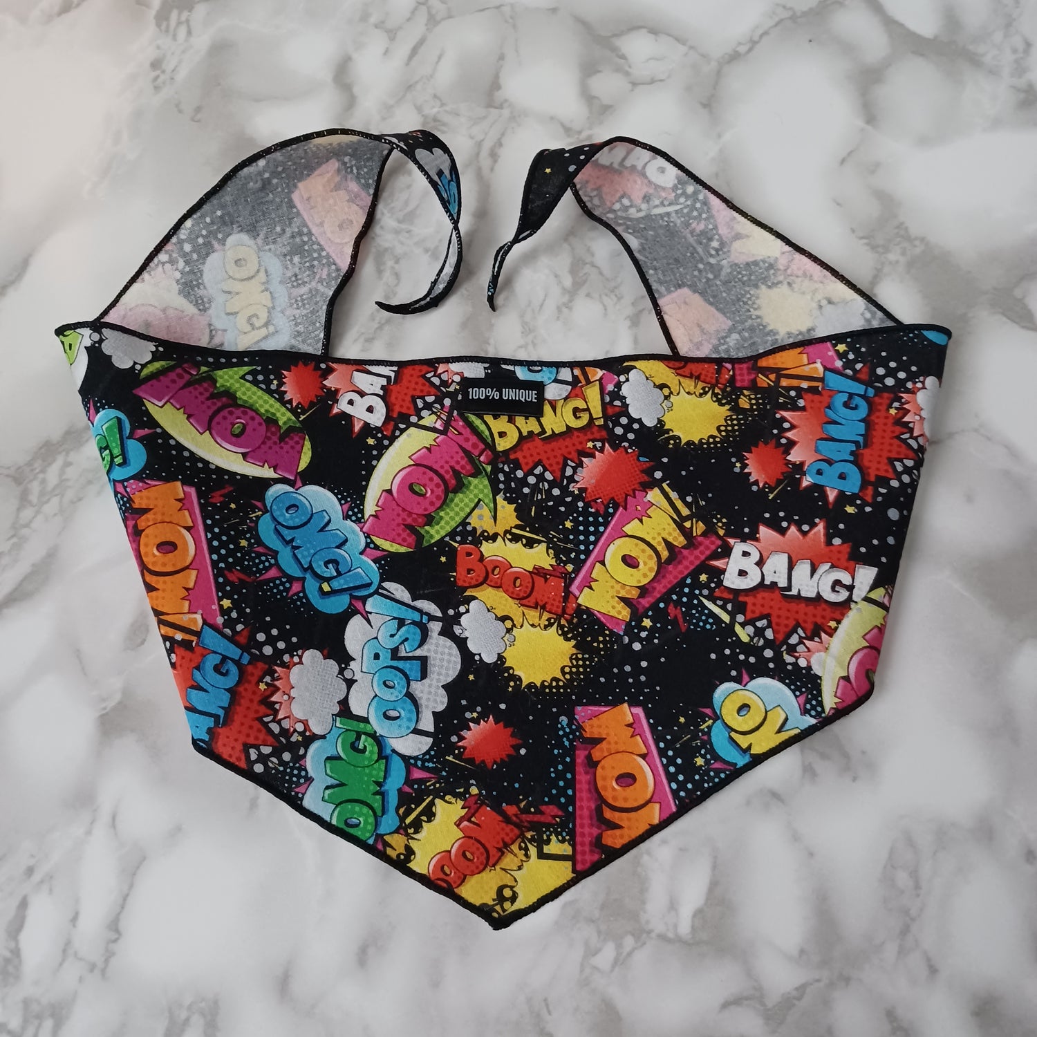 Modèle A-Chat et chien-Foulard WOW!-OMG!-Noir-jaune-bleu-rouge/Bandana WOW!-OMG!-Black-yellow-blue-red.