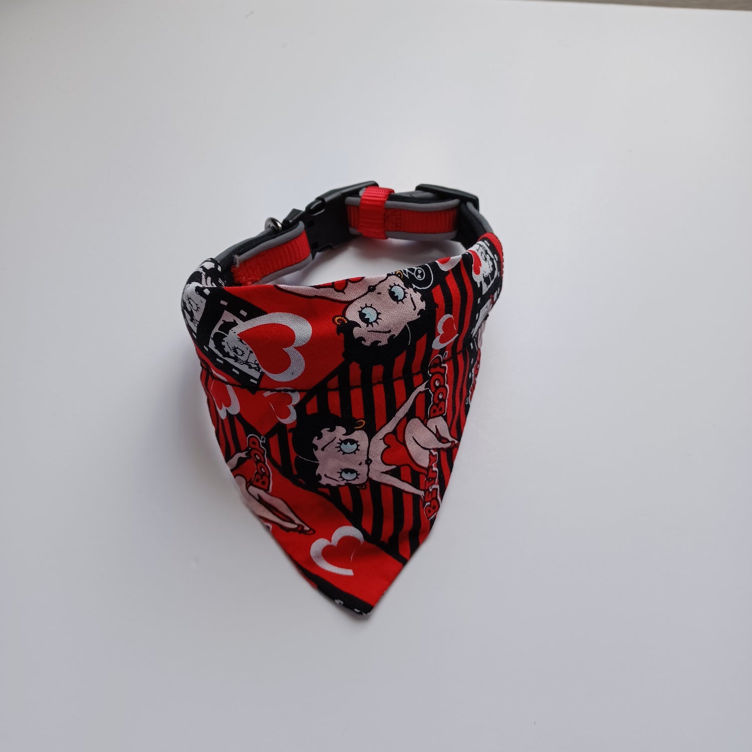 Modèle B-Chat et chien-Foulard par-dessus le collier-Réversible même motif-Rouge et noir Betty Boop/Bandana over the collar-Reversible same pattern-Red and black Betty Boop.