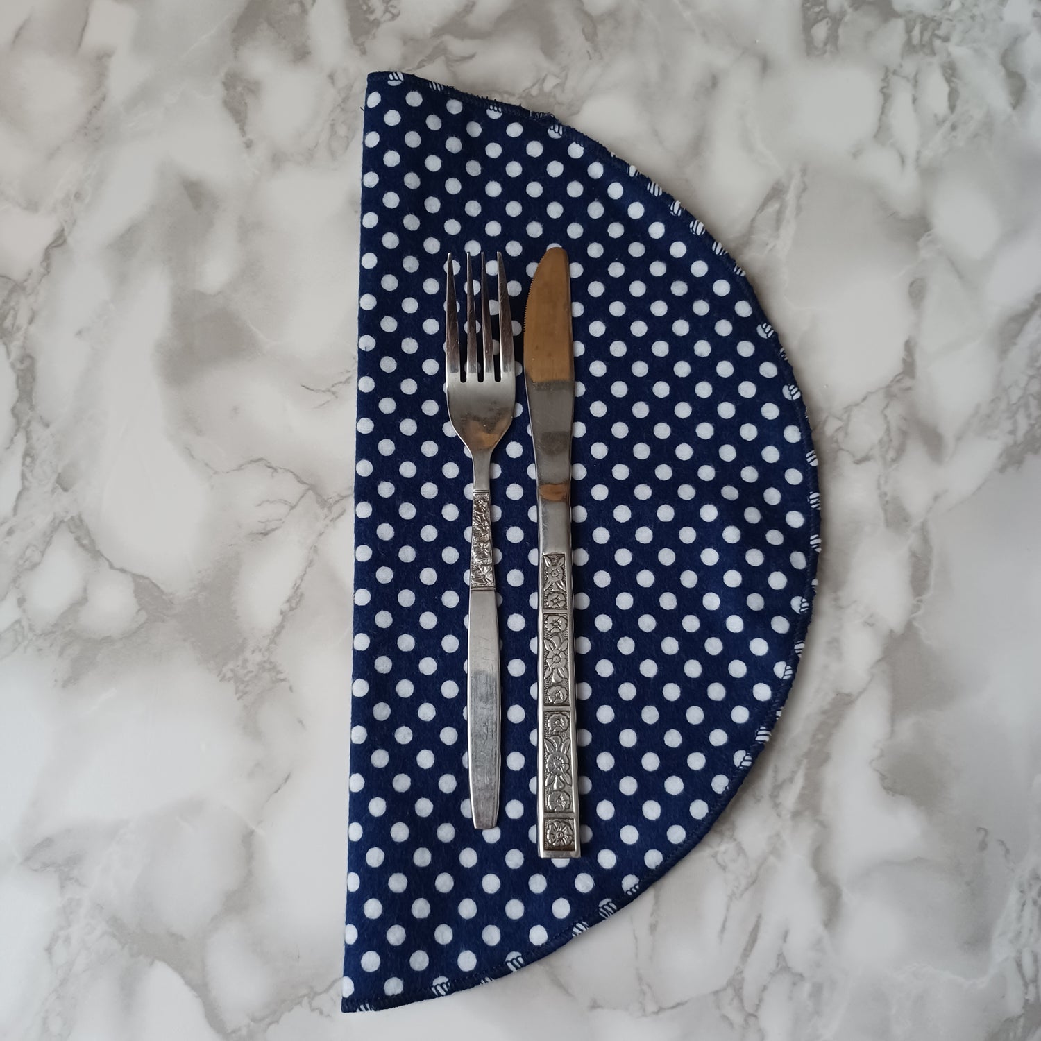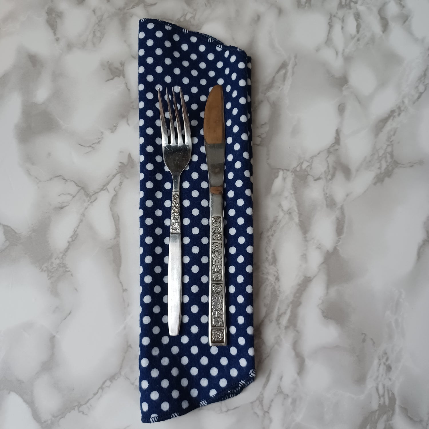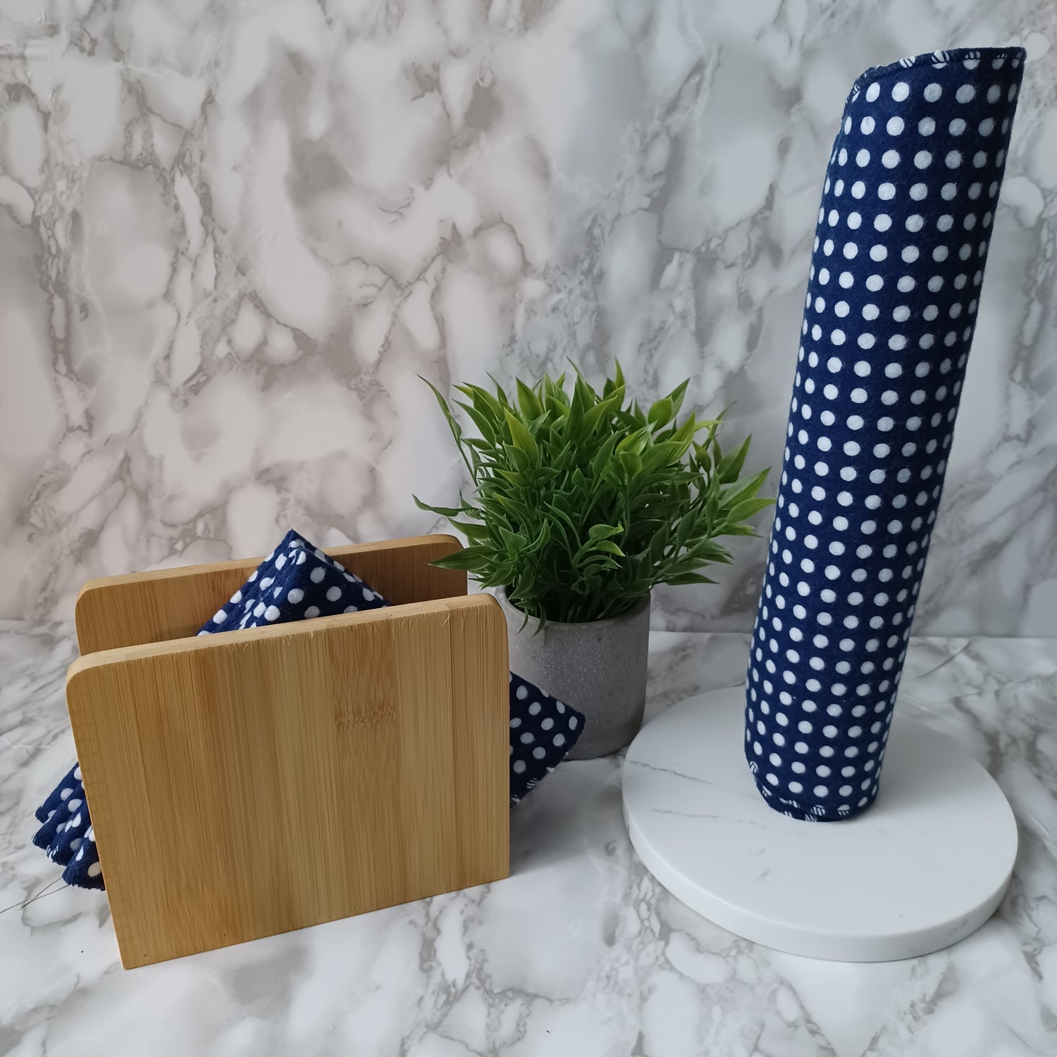 Serviettes de table et Essuie-tout lavables et écoresponsables-Bleu avec picots blancs/Napkins and Paperless towels washable and eco-friendly-Blue with white polka dot.